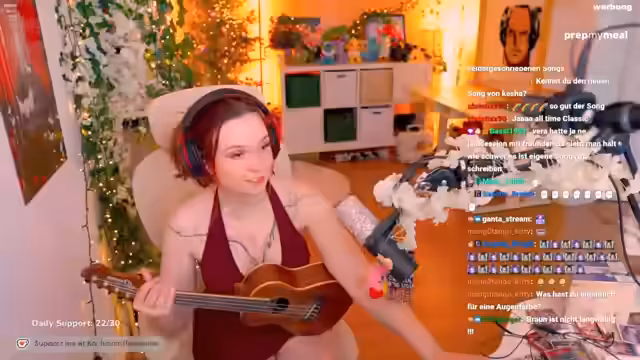 00:23:06Nachdem sie ihr Make-up aufgelegt hat, fühlt sie sich lebendiger und begrüßt neue Chatter. Sie bestätigt, dass heute ein Sing-Stream und ein WhatNot-Stream auf dem Plan stehen. Der Fokus liegt auf dem Test ihrer neuen In-Ear-Kopfhörer, um endlich ein funktionierendes Monitoring für das Singen zu haben. Sie beschreibt, wie sie die Kopfhörer anlegt und wie sie zusätzlich ihr Headset darüber setzt, um die Musik zu hören. Anschließend spricht sie über ihre persönliche Vorliebe für Zero-Getränke und erwähnt ihre Sucht nach einem Spiel, für das sie sogar einen separaten Spielstand außerhalb des Streams angelegt hat, weil sie nicht aufhören kann zu spielen. Sie kündigt auch an, dass sie die Fortsetzung des Spiels dieses Jahr erwartet.