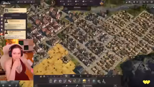 02:15:48Der Streamer spielte 'Anno' und konzentrierte sich auf den Bau von Straßen und die Expansion der Bevölkerung. Er zeigte Sorge für seine Untertanen, baute Hospitäler und Kirchen und versuchte, die Zufriedenheit der Bürger durch Propaganda und gute Infrastruktur zu sichern, um Aufstände zu verhindern.