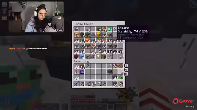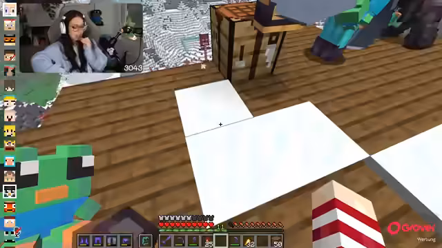 00:41:38Nachdem der Bau des Hubs in vollem Gang ist, werden übergeordnete Ideen für die Wohnumgebung auf dem Server geteilt. Geplant ist, dass jeder Spieler seinen Enderpearl-Speicher im Hub hat, um eine spontane „Hauptparty“ zu ermöglichen und eine gemeinsame Wohnecke zu schaffen. Dies soll für eine besondere Atmosphäre sorgen. Gleichzeitig wird über den neuen Weihnachtsskin gesprochen, der vom Streamer angepasst werden soll. Währenddessen erwähnt die Streamerin technische Probleme wie das Abstürzen des Fernsehers, was zu einem Stream-Aussetzer führte, und aktuelle Entwicklungen im Chat.