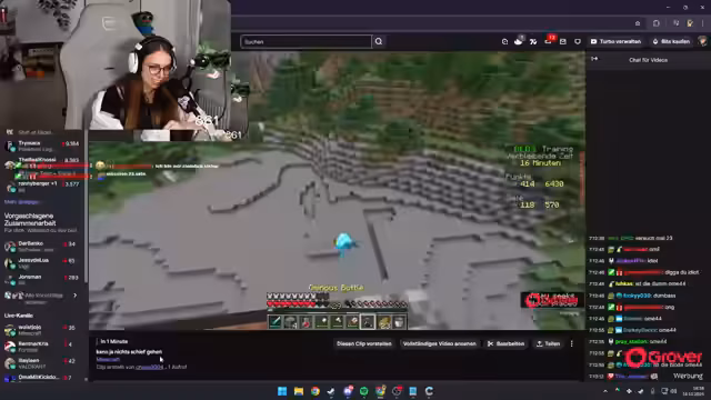 01:32:55Die Konzentration verlagert sich nun auf das systematische Sammeln von Ressourcen und das Erledigen von spezifischen Achievements. Dazu gehören das Töten von Mobs wie Fledermäuse, die Gewinnung von Diamanten und das Craften von essentiellen Werkzeugen wie Rüstung und Bündel. Während des Spiels kommt es jedoch zu erheblichen technischen Problemen: die Kommunikation zwischen den Spielern bricht plötzlich ab, was zu erheblichen Verwirrung und Frust führt. Einer der Streamer ist nicht mehr zu hören, was die gemeinsame Planung und das Gameplay stark behindert und den Fortschritt verlangsamt.