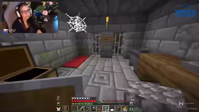 06:48:24Nach längerer Suche findet die Streamerin den Eingang zum Stronghold. Sie ist überglücklich und überlegt, ob sie den Raum direkt durchsuchen oder sich zuerst eine sichere Basis einrichten soll. Ihr Ziel ist es, das Enderauge für das nächste Achievement zu finden und das Portal für den Endgame-Content vorzubereiten.
