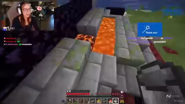 05:37:40Die Streamerin sucht nach einer Lavaquelle, um ein neues Portal zu gießen. Da dies lange dauern könnte, entscheidet sie sich, stattdessen nach einer Festung zu suchen, in der sie Blazes für das Achievement EyeSpy finden kann. Nachdem sie bereits mehrere Portale aufgebaut hat, meint sie, es sei anstrengend und zeitaufwändig, ständig nach neuen Festungen zu suchen, und sie wünscht sich, dies wäre einfacher.