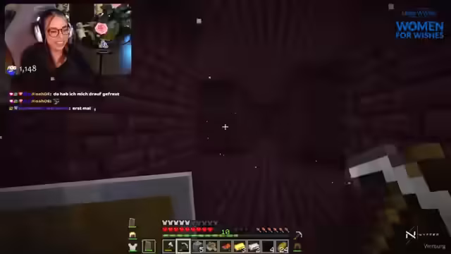 05:17:36Die Spielerin freut sich über das erreichte Achievement und erklärt, dass die Spenden direkt an Make-A-Wish gehen. Sie bereitet sich darauf vor, das Inventar zu sortieren. Sie spricht über die nächsten Herausforderungen, wie das Finden von Enderperlen und Blazes. Sie erklärt das Konzept des Spenden-Streams für Make-A-Wish, bei dem für jede erreichte 100-Dollar-Grenze ein neues Achievement am Glücksrad gezogen wird. Sie fügt das Achievement Strafting dem Rad hinzu. Sie plant, einen Lavasee zu suchen und hineinzuspringen. Sie sucht im Chat nach den Koordinaten des vorherigen Portals, um nicht in die falsche Richtung zu laufen. Sie will ein neues Portal gießen und freut sich darauf, aus dem aktuellen Gebiet herauszukommen. Sie will die Spendenanzeige anpassen und fragt im Chat nach dem nächsten Achievement, um sich darauf vorzubereiten.