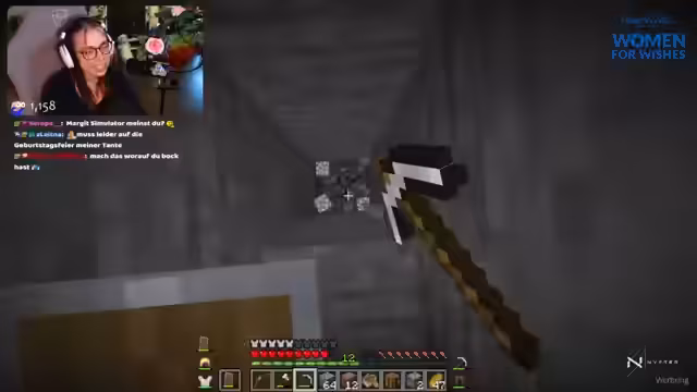 01:48:39Der Streamer notiert sich Koordinaten und kommentiert den chilligen Biomstart. Nach einem Tod im Nether und dem Verlust von Zeit, wird die Festung erkundet, um ein bestimmtes Ziel zu erreichen. Durch die Spenden von Justin und Tobi konnte man viel Zeit am Glücksrad verbringen. Ein Nest wird entdeckt und ein weiteres Achievement wird abgehakt. Es wird überlegt, in die Oberwelt zurückzukehren, um dort zu schlafen und das nächste Achievement anzugehen. Der Chat gibt Tipps, und der Streamer testet, ob man mit einem Dorfbewohner handeln kann, wenn man den Helm auszieht. Es wird festgestellt, dass dies tatsächlich funktioniert. Der Streamer braucht Warzen zum Brauen. Nach einer kurzen Pause begibt man sich zurück zum Portal, um sich mental zu erholen. Man findet das Portal wieder und schläft, um ein weiteres Achievement zu erhalten. In einer Kiste werden Gegenstände deponiert, die man eventuell später brauchen könnte.