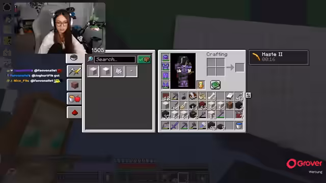 04:12:07Die Streamer arbeitet an der Schmiede und benötigt schwarze Farbe, die sie durch das Töten von Squids im Meer erhält. Gleichzeitig kommt es zu einem Streit mit anderen Teilnehmern über Sabotage, da ein Clip im auftauchte, der einen Creeper in der Basis explodieren zeigt. Paul Frege bestreitet dies vehement, doch es herrscht Misstrauen und Vorwürfe im Team. Der Chat ist überfordert und versucht, den Überblick über die Bauprojekte zu behalten.