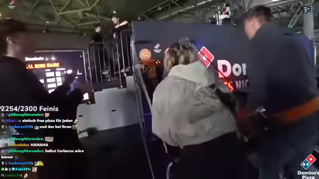 02:55:12Die Streamerin geht am Domino's Truck vorbei und erwähnt, dass Domino's ein großer Sponsor ist und die LAN-Area carried. Sie scherzt darüber, dass ihre Freunde und Verwandte sie immer nach Gutscheinen fragen, seit sie die Clips sehen. Die Streamerin sagt, dass sie mehr Gutscheine braucht und sie immer an andere gibt. Es wird ein Pick-up-Point erwähnt, wo die Leute Pizzen bestellen und abholen können. Die Streamerin fragt, ob es keine geklauten Pizzen gibt. Sie kommentiert das Wetter und findet es geil. Die Streamerin sagt, dass es bewölkt war, als sie ankamen. Sie kommentiert, dass alle Augen auf sie gerichtet sind. Die Streamerin sagt, dass der Truck ein großes Teil ist und hier draußen nur Dominos ist. Sie fragt, ob sie sich reingekauft haben. Die Streamerin fragt nach der Verkaufsrate von Dominos und erfährt, dass der Truck die meisten Pizzen in Deutschland verkauft hat. Sie kommentiert, dass es schön ist, wie es draußen ist. Die Streamerin sagt, dass man sich wie giga-fame fühlt mit einer Kamera. Sie fragt, ob Rüsen überhaupt hier ist.