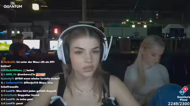 02:52:09Während einer Tour durch die LAN-Area wird die prominente Rolle von Domino's als Sponsor deutlich. fibii führt die Zuschauer an den großen Domino's-Truck heran, der als Pickup-Point für die Besucher dient. Es werden Wettbewerbe ausgerufen, bei denen die Teilnehmer in einem Basketball-Spiel gegeneinander antreten. Wer gewinnt, erhält eine kostenlose Pizza. fibii und Maja nehmen beide an der Challenge teil, wobei fibii mit 36 Punkten eine solide Leistung zeigt, aber die Pizza letztlich nicht gewinnt. Das Chicken-Döner-Fleisch wird als sehr lecker und proteinreich gelobt, was fibii zum Probieren animiert.