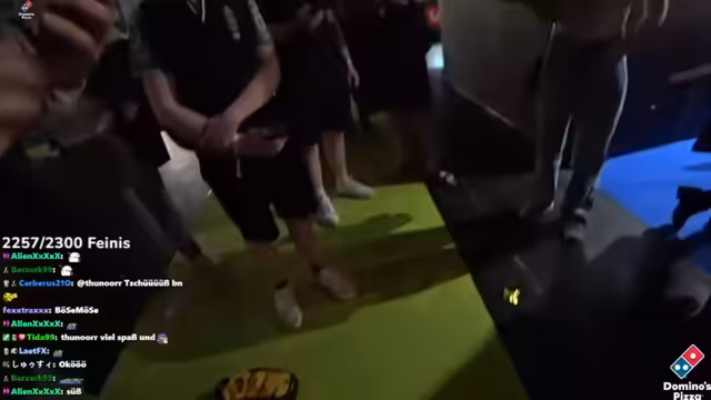 03:17:15fibii und Maja steigen in den Domino's-Food-Truck, um dort eine eigene Pizza zu belegen. Dabei treffen sie den Truck-Betreiber Andi, der fibii bereits aus dem Stream kennt. fibii nutzt die Gelegenheit, um eine weitere Mitarbeiterin namens Pete vorzustellen. Andi erklärt den enormen Andrang: Der Truck in Leipzig hatte deutschlandweit die meisten Pizzen verkauft. fibii probiert Chicken-Döner-Fleisch und stellt dabei fest, dass er es mögt, obwohl er normalerweise keine scharfen Speisen mag. Es gibt auch ein kurzes, unerwartetes Treffen mit einer Zuschauerin, die als 'Schulleiterin' bezeichnet wird und um finanzielle Unterstützung für ein Schülerprojekt bittet.