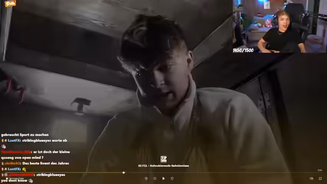 05:43:47Die Betrachtung der alten Fotos führt zu einer tiefgründigen Reflexion über das Vergnügen und die Veränderungen im Laufe der Zeit. Der Streamer beginnt, mit den Chatern die Serie "Deep Down" zu schauen, nachdem seine Mutter während des Streams aufgeräumt hat und ihn überrascht hat. Diese Serie dient ihm als Ablenkung von der emotionalen Reise in die Vergangenheit.