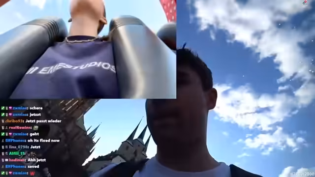 02:58:08Auf der Kirmes angekommen, wird eine Bahn namens 'Mythos' entdeckt, die ein Bild von Olaf aus League of Legends zeigt, was als Urheberrechtsverletzung diskutiert wird. Es wird überlegt, ob man den Family Coaster fahren soll. Der Zustand der Kirmes wird als gefährlich beschrieben, da man einfach so hineinkommt. Es wird festgestellt, dass es öffentliche Toiletten gibt, für deren Benutzung man 50 Cent bezahlen muss. Es wird überlegt, ob man ohne Effort erkannt wird und ein schwebendes Ding entdeckt. Technische Probleme bei der Einrichtung von Bild-in-Bild mit dem Handy werden diskutiert. Es wird überlegt, wie man die Clam und die POV gleichzeitig zeigen kann. Es wird überlegt, ob man das Handy während der Fahrt verliert. Es wird versucht, die Browser-Source in der Größe zu ändern. Es wird überlegt, ob man das Handy mit dem Saugnapf an dem Ding fest saugen kann. Es wird überlegt, ob man die Bahn mit Rucksack fahren kann. Es wird überlegt, ob man ein Grußvideo für Marie holen soll. Es wird überlegt, was Tim essen kann. Es wird überlegt, ob man Bogen schießen soll.