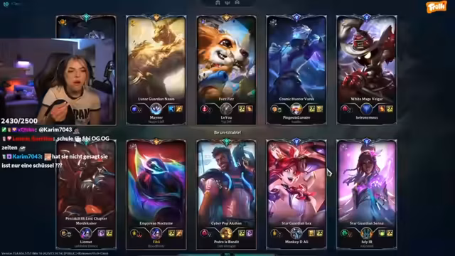 02:33:26Die Streamerin spielt Valorant und kommentiert ihr Spielgeschehen. Sie erwähnt, dass sie ein anderes Oberteil anziehen muss, da das aktuelle kratzt. Die Streamerin trägt ein Japan-Shirt, das sie selbst abgeschnitten hat. Sie äußert Frustration über die Kamera und das Spiel. Sie reagiert auf ein schlimmes Video und erwähnt, dass sie ihr Wissen wieder eliminiert hat. Die Streamerin schaut sich Skins im Shop an und überlegt, welche sie kaufen soll. Sie spricht über verschiedene League of Legends Charaktere und überlegt, welchen sie spielen soll. Die Streamerin fragt den Chat, ob sie Jungle oder Support spielen soll. Sie erwähnt, dass sie im Moment alle Rollen spielt. Die Streamerin spielt League of Legends mit einem Zuschauer und versucht, Jungle zu spielen.