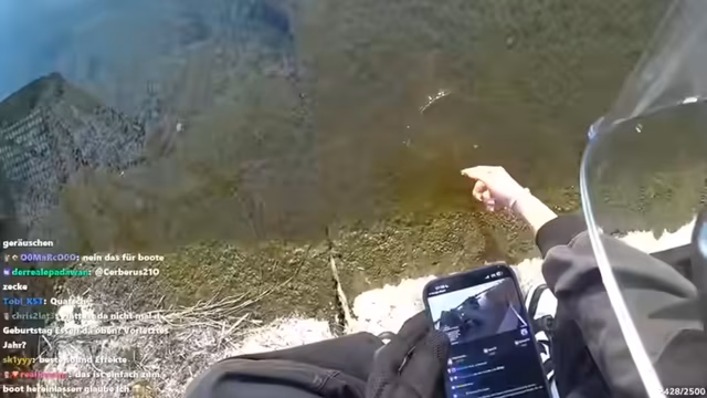 06:58:06Eine Erkundungstour beginnt an einem See, wo ein Restaurant geschlossen ist, was zu leichter Enttäuschung führt, da die Speisen dort sehr lecker sein sollen. Die malerische Aussicht entschädigt jedoch dafür, und es werden Fotos gemacht. Es wird überlegt, ob man an einer Familienfeier teilnehmen soll, die dort stattfindet. Die Gegend bietet Abenteuer, Sport und Natur, mit Möglichkeiten zum Segeln, Schwimmen und verschiedenen Bootsverleihen. Es stellt sich die Frage, ob bereits zu Mittag gegessen wurde, und der Wunsch nach einer Thüringer Bratwurst kommt auf. Die Streamerin philosophiert über das Streamen und die damit verbundene Schwierigkeit, sich an Mahlzeiten zu erinnern, und stellt fest, dass sie bereits sieben Stunden live ist. Die Fahrt geht weiter, wobei die Umgebung und die vorbeifahrenden Fahrzeuge kommentiert werden. Es wird überlegt, ob eine größere Maschine für das Moped angeschafft werden soll und eine kurze musikalische Untermalung eingespielt.