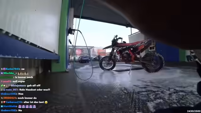 08:02:32Der Streamer fährt zur Tankstelle, um sein Moped zu betanken und es zu reinigen. Er zeigt den Tankvorgang und kauft einen Schwamm zum Saubermachen. Anschließend fährt er zu einer Selbstwaschanlage, wo er sein Moped gründlich reinigt. Der Prozess dauert länger als erwartet und das Wetter ist kalt, aber das Ergebnis ist zufriedenstellend. Das Moped sieht danach sauber und gepflegt aus.