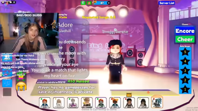 03:27:26Der Streamer wechselt in ein Roblox-Sing-Spiel, in dem er in einer Lobby gegen andere Spieler antreten muss. Er ist unsicher über seine eigene Stimme und nutzt Auto-Tune, um die Performance zu verbessern. Es kommt zu technischen Problemen und Unmut über die Songauswahl und die Bewertung durch andere Spieler in der Lobby.