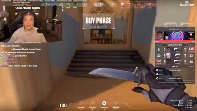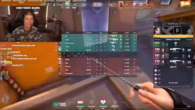 12:21:06Im weiteren Verlauf streamt die Streamerin, wie sie verschiedene Augenbrauen schminkt und bewertet das Ergebnis. Anschließend spielt sie das Spiel Valorant, wobei sie ihre Mitspieler und Spielzüge kommentiert. Der Chat interagiert stark, während sie kämpft, wobei sie besonders ein erfolgreiches Teamplay preist. Gegen Ende des Streams wird sie müde und überlegt, aufzuhören, da ihre Zuschauer ausbleiben und sie krank ist, bleibt aber noch etwas weiter online, um mit der Community zu interagieren.