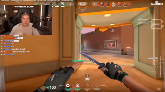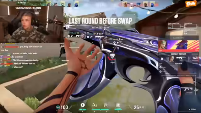 08:49:43Der Fokus verlagert sich auf das Spielgeschehen in Valorant. Das Team plant strategische Manöver, wie zum Beispiel einen B-Rush, und nutzt Agentenfähigkeiten, um den Gegner zu täuschen. Der Streamer agiert als Anführer und gibt Anweisungen, während er auch mal selbst in Erscheinung tritt. Nach einem erfolgreichen Killpuls wird die strategische Stärke der Formation gelobt und ein Sieg gefeiert.