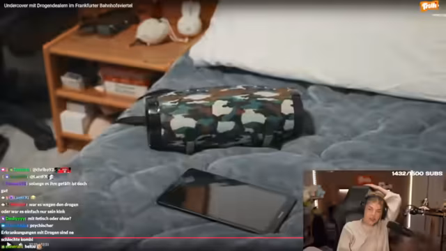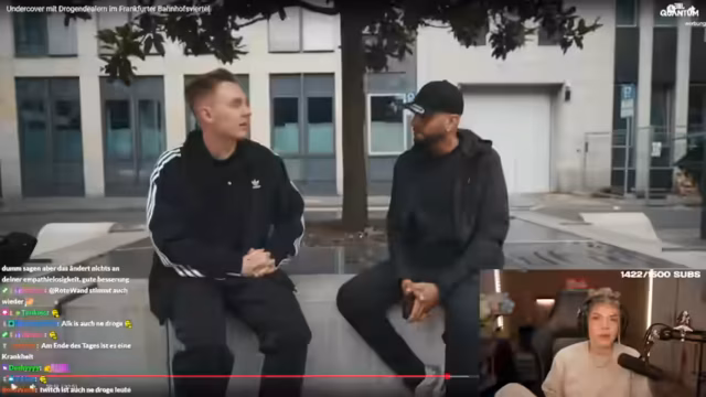 00:21:07Der Streamer beginnt, die Doku 'Tomatelix im Bahnhofsviertel' zu schauen, die den Drogenhandel in Frankfurt thematisiert. Er reagiert auf die Aussagen des Ex-Dealer 'Mo', der über seine vier Jahre im Drogengeschäft berichtet. Der Streamer zeigt sich schockiert von den Schilderungen über organisierte Dealergruppen wie die 'Algerier', den alltäglichen Risiken, Razzien der Polizei und der Paranoia der Dealer.