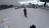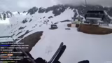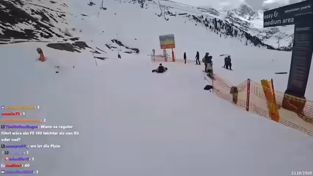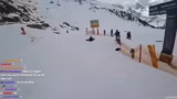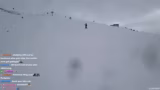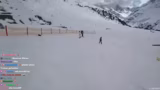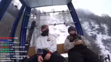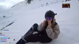 00:54:16Auf dem Weg zur Piste gibt es eine Karambolage, bei der der Streamer auf seinem Snowboard hinfällt und sich einen blauen Fleck zuzieht. Ein Vogel hat auf dem Board gesessen, was als schlechtes Omen gewertet wird. Sie beschließen, eine Geheimroute zu fahren, obwohl es ein Schild gibt, das das Skigebietende markiert und vor Lawinen warnt.