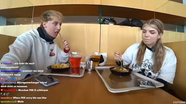 03:20:45Nachdem die Streamer nach dem anstrengenden Vormittag die Piste erreicht haben, wird eine Pause eingelegt, um zu essen. Tobi schlägt vor, ein TikTok-Video mit der Trolleyburger-Challenge zu drehen. Er nähert sich mehreren Skifahrern mit dem Burger, um deren Reaktionen zu filmen. Nach anfänglichem Zögern findet er eine Frau, die positiv auf das Spiel eingeht. Die Herausforderung wird als Erfolg gewertet, da sie eine authentische und positive Reaktion erzielt, was die Stimmung im Stream verbessert.
