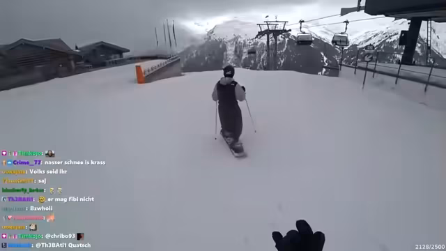 04:05:19Tobi begrüßt seine Mutter im Chat, die auch auf dem Snowboardtrip ist. Er erzählt, dass sie auf ihn und Phoebe aufpasst, aber nicht er auf sie. Es gibt eine humorvolle Auseinandersetzung über Spitznamen und Tobi beschreibt, wie er und seine Ausrüstung mit dem Schnee in Kontakt gekommen sind. Anschließend suchen sie nach weiteren Leuten für eine mögliche Aktion mit 'Trolli', werden aber von diesen ignoriert. Tobi denkt über seinen nächsten Schritt nach, während er nach Aktivitäten in Innsbruck sucht, inklusive humorvoller Suchen nach einem FKK-Spot.