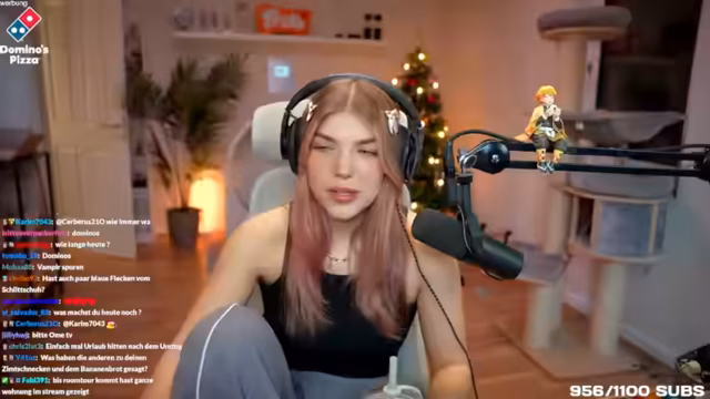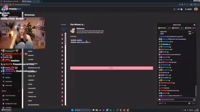 00:04:08Zu Beginn des Streams wird ein Dominos-Gutschein-Giveaway angekündigt. Es sind 20 Euro Gutscheine, die unter Zuschauern verlost werden. Die Teilnahme ist einfach: Man muss 'Dominos' im Chat schreiben. Die Gutscheine können direkt bei lokalen Dominos-Filialen eingelöst werden. Dieses Giveaway wird im Laufe des gesamten Streams immer wieder durchgeführt, um Zuschauern eine Möglichkeit zum Mitmachen zu geben.