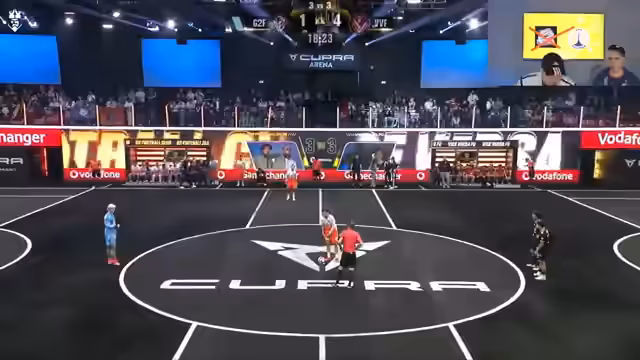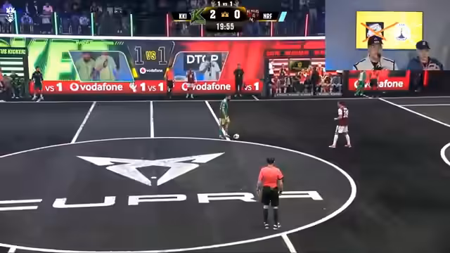 01:39:12Unmittelbar nach dem Ende des ersten Spiels beginnt das Duell zwischen G2 Football Club und Vice Versa FC. Die Teams werden präsentiert: Vice Versa mit Weltmeister Mario Götze und Ebru als Präsidenten, und G2 mit den Brüdern Reese und Rumatra. Das Spiel beginnt sehr rasant und direkt mit Toren auf beiden Seiten, was auf hohes Tempo und hohes technisches Niveau der Spieler hindeutet. Die Kommentatoren heben hervor, dass sich die Teams schnell einfinden, was als überraschend und positiv bewertet wird.