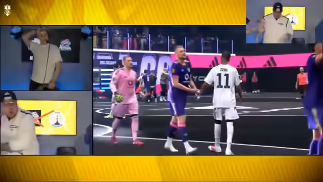 00:01:00Ein Höhepunkt ist der spektakuläre Einlauf von Jordan und Sammy, der von der Decke herab erfolgt. Der Kommentator gibt einen detaillierten Überblick über die speziellen Kings League Regeln. Die Spiele sind 7 gegen 7, dauern 40 Minuten ohne Unterbrechung und haben kein Unentschieden. Besonders markant ist das System des Game Changer Goals: in Minute 18 wird gewürfelt, was die Anzahl der Spieler für den Rest der Halbzeit bestimmt. Die zweite Halbzeit bringt Secret Cards ins Spiel, wie den Penalty, Joker oder Punkte-Doppelung.