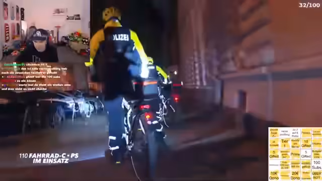 02:08:32Die Kontrollen in Frankfurt gehen weiter, und ein Radfahrer wird wegen Handygebrauchs angehalten und mit einem 100-Euro-Bußgeld belegt. Der Streamer und die Polizisten unterhalten sich über die Ausrüstung und die Notwendigkeit von Lastenrädern. Die Polizisten Erik und Chris geben Einblicke in ihre Motivation, Polizist geworden zu sein. Sie schildern, dass sie diesen Beruf schon immer als Traumjob angesehen haben und sich für Recht und Ordnung einsetzen, was ihnen persönlich sehr viel bedeutet.