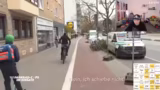01:30:33Der Clip zeigt eine Kontrolle einer Radfahrerin, die in einer Einbahnstraße unterwegs war und ihr Portemonnaie nicht dabei hatte. Nach einer Belehrung über die Höchstgeschwindigkeit in Fahrradstraßen wurde sie mit einer Anzeige von 120 Euro und einem Punkt in Flensburg bestraft. Der Streamer kommentiert die Szene mit Glück für die Frau, da sie aus der Probezeit war. Der letzte Clip zeigt die Kontrolle eines Geisterradfahrers, der nach einem Zuruf der Polizei trotz guter Gründe stehen bleibt.