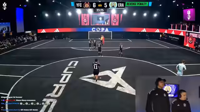00:01:25Zu Beginn des Spiels wird der Spieler 'Maus' hervorgehoben, der als ungewöhnlich talentierter 'Topscorer' beschrieben wird, der bereits viele Tore erzielt hat. Ein Schiedsrichterwechsel wird als 'brandneu' und voller Potenzial angesehen. Während des Spiels gibt es jedoch immer wieder technische Unterbrechungen, wie Probleme mit dem Mikrofon und mysteriöse Ausfälle der Scheinwerfer. Das Spielverlauf ist geprägt von vielen Torschüssen, aber auch von unerklärlichen Fehlern, wie einem Ball, der im Tor 'hing', ohne dass ein Tor registriert wurde. Die eigene Mannschaft steht oft unter Druck, kämpft sich aber immer wieder heran, was vom Kommentator als 'geil' und 'stark' bewertet wird.