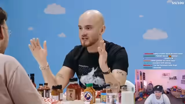 03:33:55Für die abschließende Spicy-Challenge muss der Streamer drei Fragen beantworten. Bei einer Aufgabe soll er einen Cringe-Kommentar unter einem Bild eines anderen Creators hinterlassen. Anstatt dies zu tun, wird er per Münzwurf entscheiden, ob er den Kommentar schreiben oder stattdessen eine extrem scharfe Chili essen muss. Die Münze fällt auf 'essen', und er setzt sich der Schärfe der Carolina Reaper aus, was ihm große körperliche und seelische Abwehrreaktionen abverlangt.