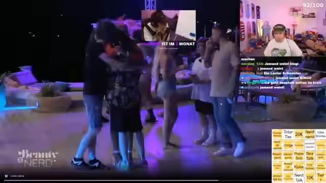 03:55:55Im Whirlpool entspinnt sich eine neue Konstellation. Der Fantasy-Nerd Aaron zeigt Interesse an Maria, was bei deren Teampartnerin Chanel zu Eifersucht führt. Gleichzeitig entwickelt sich zwischen Sebastian und seiner Partnerin Anna eine stärkere Verbindung. Der Streamer fasst zusammen, dass die Beziehungen im Haus komplex und dynamisch sind und es zu weiteren Verwicklungen kommen wird, was er in den Folgen beobachten wird.