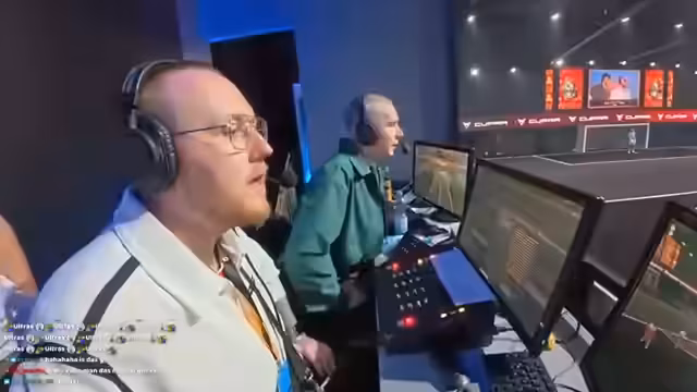 00:20:07Nach der Ankunft am Spielfort beginnt die Analyse des ersten Spiels zwischen G2 und No Rules. Der Streamer kommentiert das Spiel als spannendes Duell und stellt fest, dass beide Teams sehr kämpferisch agieren. Er lobt den fairen Sportgeist und wechselt sich mit anderen Personen, wie Julia, im Kommentieren ab. Dabei wird die Geste, die Spieler nicht zu stören, hervorgehoben, um den Fokus auf das Spiel selbst zu lenken.
