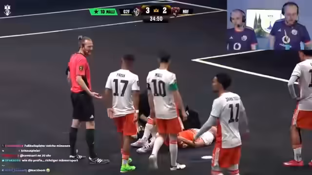 00:49:12Das Spiel zwischen G2 und No Rules ist weiter knapp und ausgeglichen. Es kommt zu mehreren harten Tacklings und Standardsituationen, die für Nervenkitzel sorgen. Der Streamer und sein Kommentatorenteam sind begeistert von der Intensität des Spiels. Sie loben insbesondere die mentalen Stärke der Spieler und die Tatsache, dass trotz des hohen Drucks ein fairer und kämpferischer Stil beibehalten wird. Die Chat-Community wird eingebunden und zur Stimmungserfassung aufgerufen.