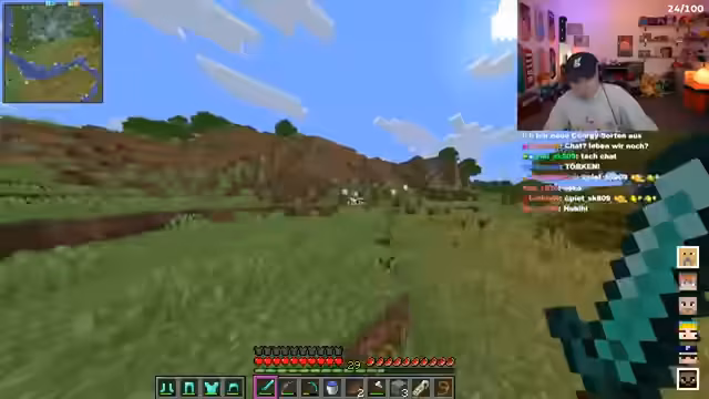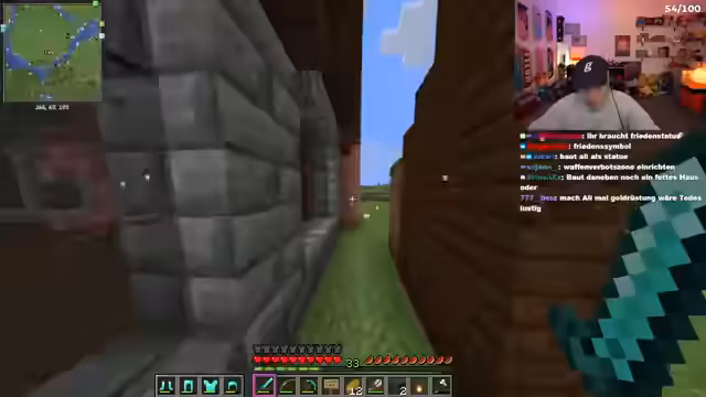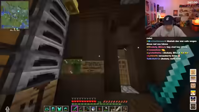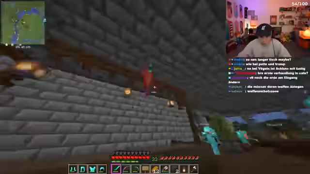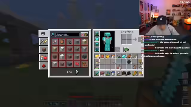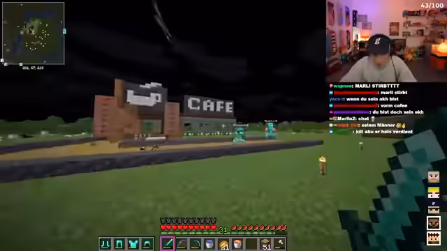 02:32:28Der Konflikt zwischen Schradin und Zabex eskaliert, nachdem Schradin 60 Diamanten und vollständige Diamantrüstung durch Zabex verloren hat. Er fordert Gerechtigkeit und plant ein 'jüngstes Gericht' im Café, um die Rückgabe der gestohlenen Gegenstände plus 25 Diamanten Strafe zu erzwingen. Parallel dazu bereiten Ali, Philo und andere den Bau eines Cafés vor, um als neutrale Plattform für Konfliktlösungen zu dienen. Diskussionen drehen sich um das Café-Design, inklusive eines Schriftzugs 'GOLD' und schwarzer Wolle als Baumaterial.