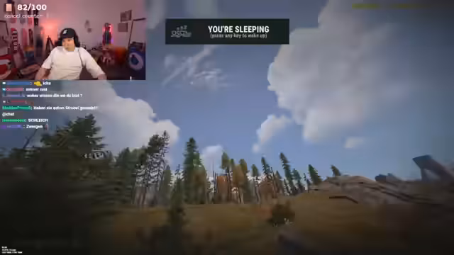 04:40:42Der Streamer plant den Bau einer vergrößerten Raid Base und koordiniert mit seinen Zuschauern, die Ressourcen wie Holz, Metall und Stein zu beschaffen. Er platziert zunächst Schlafsäcke, da keine Betten vorhanden sind, und schlägt vor, dass Zuschauer in Helikoptern zurückfliegen, um Material zu holen. Es gibt Diskussionen über die Platzierung der Basis und die Verteilung der Aufgaben unter den Teilnehmern, um das Vorhaben effizient durchzuführen.
