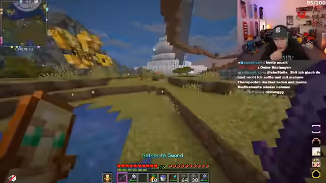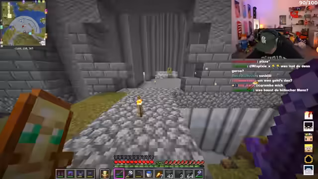 03:16:17Es wird über den Bau des Turms diskutiert, wobei Dominik für mehr Initiative von Felix plädiert. Die Streamer überlegen, wie sie den Berg im Hintergrund terraformen können, was als stumpfe, aber zeitaufwändige Aufgabe angesehen wird. Felix experimentiert mit einem Animations-Mod, der die Creeper und Zombies witzig aussehen lässt. Die Idee, Bastis Base zu besuchen, kommt auf, aber es wird darauf hingewiesen, dass man dafür ein spezielles Texture Pack oder eine „Erleuchtung“ benötigt. Basti verspricht, diese zu schicken und sich in zehn Minuten zu treffen. Währenddessen wird überlegt, den Garten auf der obersten Plattform kreisförmig oder in die Spitze des Turms zu integrieren. Es wird auch die Idee geäußert, den Stegi-Berg abzutragen, um Platz für Wasser zu schaffen. Die Streamer warten auf Basti, um seine Base zu erkunden und weitere Bauprojekte zu besprechen.