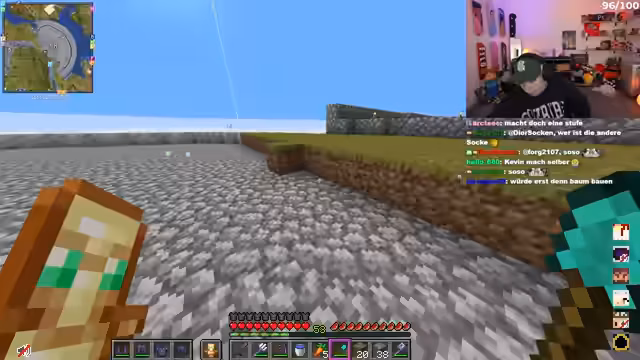 02:53:38Kevin und Dominik diskutieren über den Aufenthaltsort von Dominei und ein Schild in ihrer Base, auf dem steht, dass Henkes Kopf bei ihnen liegt. Es wird vermutet, dass dies mit einer Wette zwischen Dominik und Henke zusammenhängt, bei der Henke nicht rauchen darf. Sollte er die Wette verlieren, schuldet er Dominik 1000 Euro. Währenddessen wird die Base mit Andesit und Gravel ausgebaut, wobei Kevin sich um das Farmen der Materialien kümmert. Es treten jedoch Serverprobleme auf, die den Fortschritt behindern. Die Streamer äußern ihre Frustration über die anhaltenden Lags und spekulieren über die Ursachen, wie etwa Probleme mit AWS. Trotz der technischen Schwierigkeiten versuchen sie, die Stimmung aufrechtzuerhalten und sprechen über verschiedene Themen, darunter auch über philosophische Fragen bezüglich des Bezahlens von Käse mit Löchern.