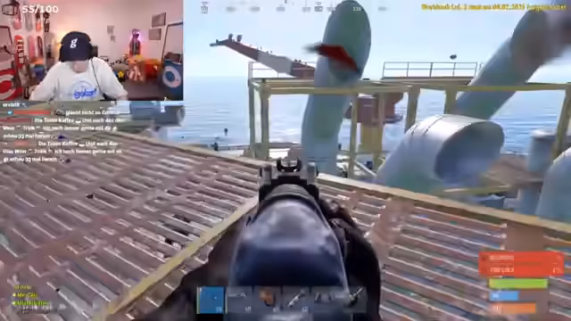 08:48:15Ein Kampf um die Kontrolle einer großen Ölplattform beginnt. Das Streamer-Team nutzt Taktiken wie das Tauchen von unten an, um überraschend in den Kampf zu starten. Die Gegner, 'Team Danergy', werden von Bots auf der Plattform attackiert, was die Situation chaotisch macht. Nach einem langen und hitzigen Kampf, in dem viele Gegner von Bots getötet werden, greift das Streamer-Team an, kann den Sieg jedoch nicht klar für sich entscheiden und verliert wichtige Ausrüstung.