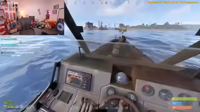 02:29:48Das Boot fährt zur Base von Trimax, einem anderen Spieler, um diese zu besuchen. Obwohl sie sich im Frieden nähern, gerät die Situation angesichts unklarer Informationen im Chat schnell unter Spannung. Kurze Zeit später wird ein Helikopter gesichtet, was zur Flucht führt. Anschließend besuchen sie eine andere, sehr hässlich bewertete Base, wo sie einem Spieler namens Max begegnen und ihm Waffen schenken, um eine friedliche Beziehung aufzubauen.