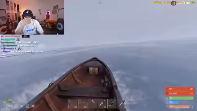 05:08:04Durch ständige Kommunikation mit einem Teamkollegen namens Monte wird der Plan angepasst. Da Monte jedoch kein Boot hat und der Streamer vergessen hat, die rote Karte mitzunehmen, wird der Plan geändert. Der Streamer bleibt versteckt und wartet auf den richtigen Moment. Schließlich kommt ein anderer Spieler namens Vandalu per Boot hinzu, und gemeinsam machen sie sich auf, die Ölinsel heimlich zu besteigen, um looten zu können.
