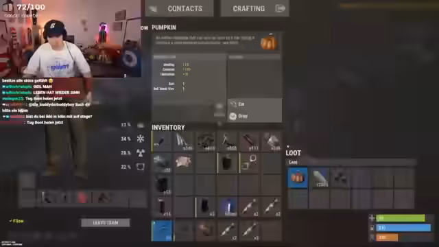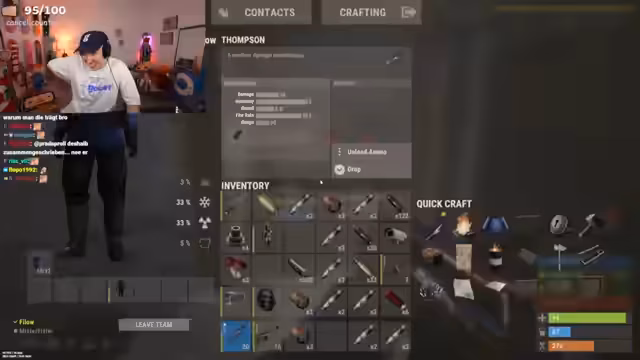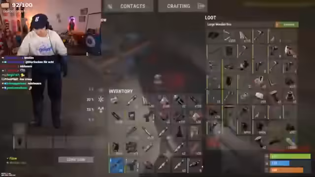 00:21:56Es wird angekündigt, dass heute im Rust-Team 'Zabex' gespielt wird, wobei die Teamgröße auf vier Personen begrenzt ist. Einige Streamer auf dem Server, wie 'Schradin', haben gemäß Beobachtung weniger Spaß, da deren Streams bei Rust im Vergleich zu anderen Spielen wie Elden Ring weniger Zuschauer generieren. Der Streamer selbst jedoch genießt den Rust-Vibe und ist im 'RIG'-Team. Gleichzeitig kämpft er mit massiven Performance-Problemen im Spiel, die zu niedrigen FPS-Werten führen, was er auf einen möglichen Bug oder unpassende Einstellungen zurückführt und bei dem er um Hilfe bittet.