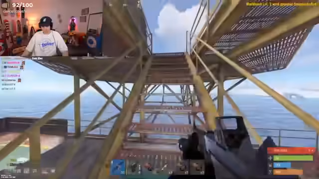 04:46:40Der Streamer erkundigt sich nach der Verfügbarkeit von Taucherflaschen für einen geplanten Trip zur Ölinsel. Nach der Zusage eines Mitspielers namens Chad wird die Aktion gestartet. Es wird eine Taktik zur Öl-Gewinnung erläutert, bei der Tauchanzüge verwendet werden, um Bots zu vermeiden und das Öl sicher aufzusammeln. Besonderen Wert wird auf das Stealth-Verlegen gelegt, um nicht entdeckt zu werden und die Jagd auf die Bots zu gewährleisten.