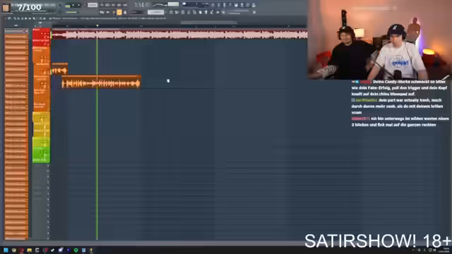 05:07:57Anfangs wird der frustrierende Escape Room Room thematisiert, bei dem alle Teilnehmer mehrfach ausgeschieden sind. Der Streamer gibt zu, dass es ihm nicht gelungen ist, einen einzigen Reim zu formulieren und gibt dem Mitspieler Nick die Chance, allein weiterzumachen. Gleichzeitig werden künftige Inhalte angedacht, wie eine gemeinsame Discord-Session und ein Diss-Track gegen eine Person namens Rohrath, für den Ideen gesammelt werden. Die Stimmung ist geprägt von Frust über das gescheiterte Escape Room und einer kreativen Suche nach neuen Inhalten.