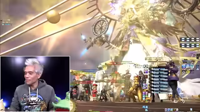00:13:26Der Streamer startet eine Party für den Inhalt 'Elemental DC 2' im Spiel Final Fantasy XIV. Er verkündet den Passwortcode '1552' und lädt Zuschauer ein, beizutreten. Während des Spiels kommentiert er die Mechaniken des Bosskampfes und gibt Hinweise zur korrekten Ausführung der Attacken.