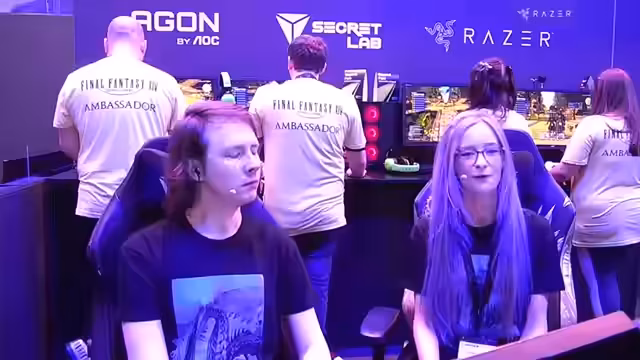 09:33:41Die Freude am Spiel wird hervorgehoben und die Schwierigkeit, sich spontan in eine Gruppe einzufügen, angesprochen. Es wird ein Gespräch mit Mitspielern geführt, die seit zwei bzw. drei Jahren Final Fantasy XIV spielen. Die Vorfreude auf die Shizui-Dungeon wird erneut betont, insbesondere wegen der Musik und Grafik. Es wird spekuliert, ob die anderen Spieler Taktiken besprechen, um die eigene Gruppe zu schlagen. Die Dungeon Shizui wird als beliebt unter den Spielern auf der Gamescom identifiziert, sowohl wegen des Designs als auch der droppenden Gegenstände. Es wird angemerkt, dass die Kleidung für bestimmte Charaktere besser geeignet ist als für andere. Die Spieler werden von Razer mit Headsets ausgestattet, die Umgebungsgeräusche komplett ausblenden. Die Moderatoren Tarek, Luca und Lizzy werden für ihre Arbeit gelobt, insbesondere für ihre Ausdauer und Stimmstärke. Ein freundschaftlicher Schlagabtausch zwischen den Moderatoren wird erklärt, um Missverständnisse zu vermeiden. Die Schönheit der Unterwasserwälder und die Grafik-Updates im Spiel werden hervorgehoben. Es wird auf die kostenlose Testversion von Final Fantasy XIV hingewiesen und die Ambassadors mit ihren pastellgelben T-Shirts erwähnt, die bei Fragen und Problemen helfen. Die Gemütlichkeit beim Spielen wird betont und die gute Damage-Leistung der Gruppe hervorgehoben. Der Splitscreen wird als angenehme Neuerung empfunden. Abschließend wird die Lautstärke in der Halle thematisiert, aber die gute Verständlichkeit der Moderatoren im Stream gelobt.