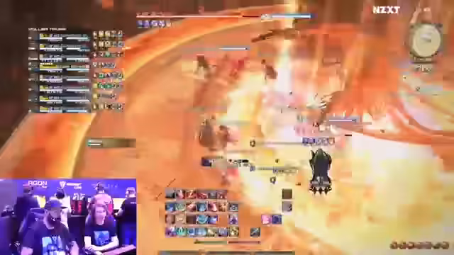 06:25:23Nach einer kurzen Pause geht es weiter mit dem Arcadian Raid, wobei die Teams die Zonen 3 und 4 spielen. Die Teams werden vorgestellt, darunter ein Black Mage, der bereits den ganzen Tag auf der Bühne ist. Die Teamzusammensetzungen werden analysiert, wobei ein White Mage und ein Gelehrter im Einsatz sind. Der Kampf beginnt, und die Kommentatoren loben das Boss-Design und die Musik. Die Teams müssen auf die Zündschnüre achten und vermeiden, in den Bereichen mit kurzen Zündschnüren zu stehen. Ein Viper wird von einer Explosion getroffen, aber das Team erholt sich schnell. Der Boss setzt 'Erosion' ein, und die Teams müssen sich anpassen. Die Kommentatoren loben die Kamerapositionierung und bemerken den Schaden, den der Rotmagier verursacht. Die Teams setzen Auto-Attacken ein, um zusätzlichen Schaden zu verursachen. Insgesamt ist es ein spannender und herausfordernder Raid, bei dem die Teams ihr Können und ihre Strategien unter Beweis stellen müssen.