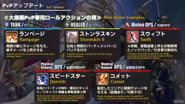 00:56:27Occult Crescent wird in Patch 7.25 eingeführt. Videos zeigen Phantom Jobs (Support Job Type System) und Critical Engagements. Das System ähnelt dem Elemental Wheel. Eine neue Allied-Society-Quest mit der Mamulja wird hinzugefügt, sowie weitere Hildeprand Adventures. Der Savage-Modus des Arcadian Cruiserweight Tiers wird eine Woche nach Patch 7.2 veröffentlicht. Rollenaktionen sind exklusiv für Large-Scale PvP. Es wird möglich sein, eine von drei Aktionen auszuwählen und diese im Startbereich zu ändern. Beispiele für Rollenaktionen sind Rampage für Tanks, Stoneskin 2 für Heiler, Swift für Melee DPS, Dervish für Physical Range DPS und Comet für Magic DPS.