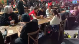 01:42:20Ein besonderes Highlight ist das große Gewinnspiel, bei dem die Gewinnernummern auf Monitoren am Eingangsplatz bekannt gegeben werden. Eine große Bühne dient als Mittelpunkt für diese Aktivität. Nebenbei wird die Stimmung am Eingangsplatz beschrieben und die Fülle an Menschen erwähnt.
