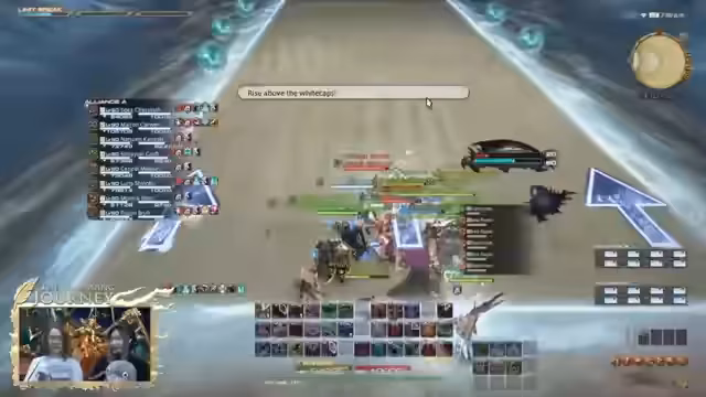 01:40:20Der Streamer wechselt zum Gilded Araya, wo er eine Party über den Party Finder gründet. Es werden Strategien und Erinnerungen an den Bosskampf geteilt, einschließlich einer Technik, die von Yulia erlernt wurde. Der Kampf selbst wird gespielt, mit Fokus auf Mechaniken wie der Sixblade-Tree-Attacke. Nach dem Kampf werden Gruppenfotos gemacht und die Emotes der Spieler bewundert, einschließlich der Carbuncles und anderer Darstellungen.